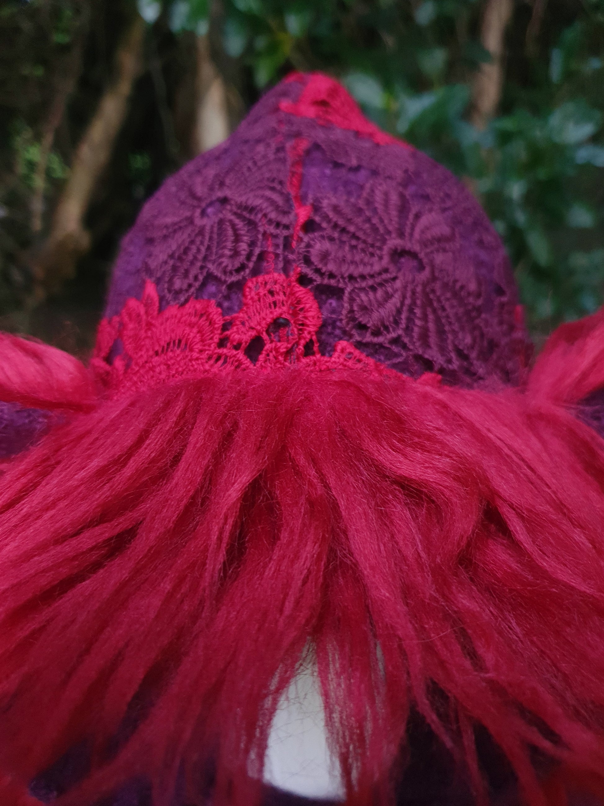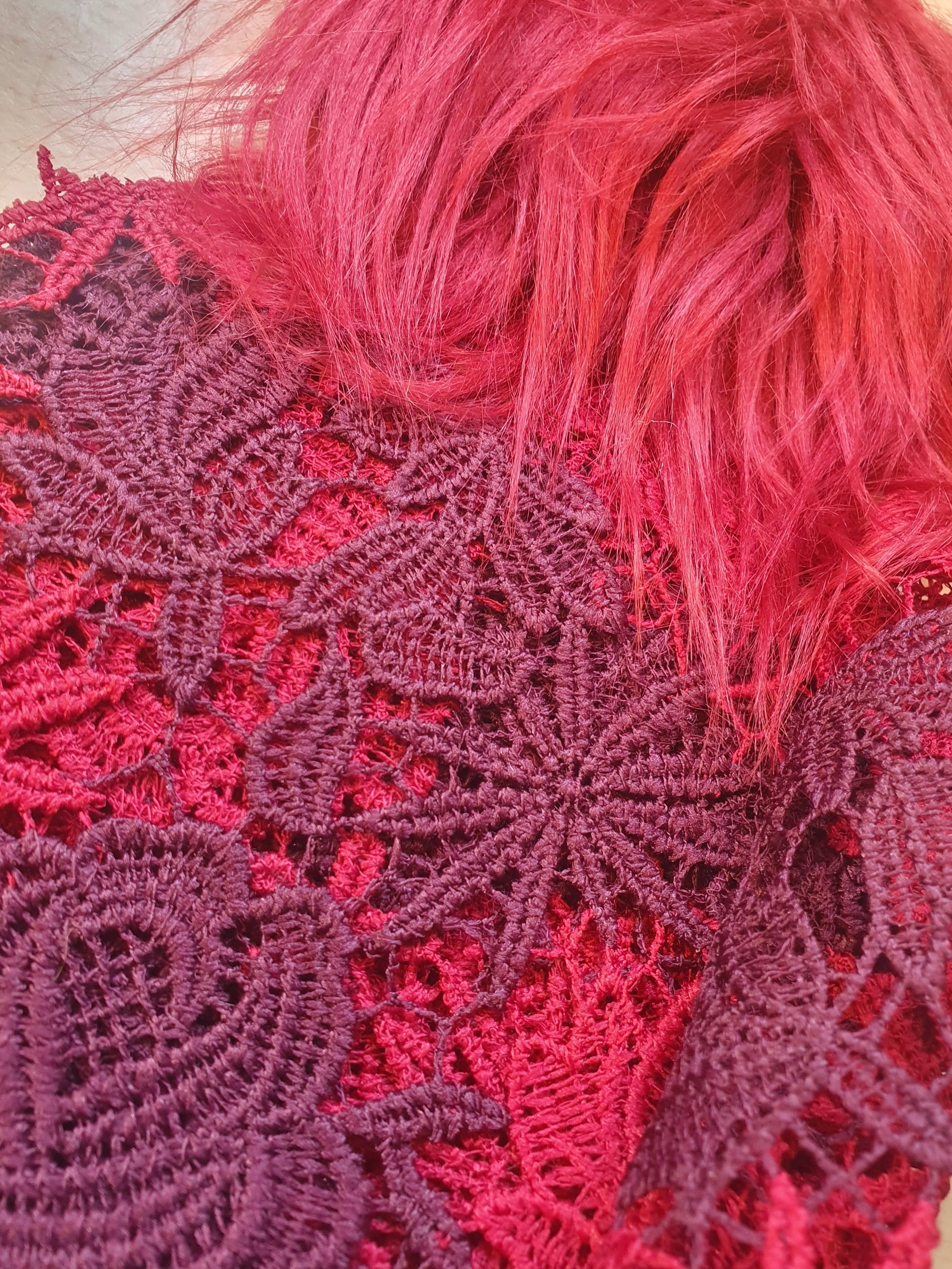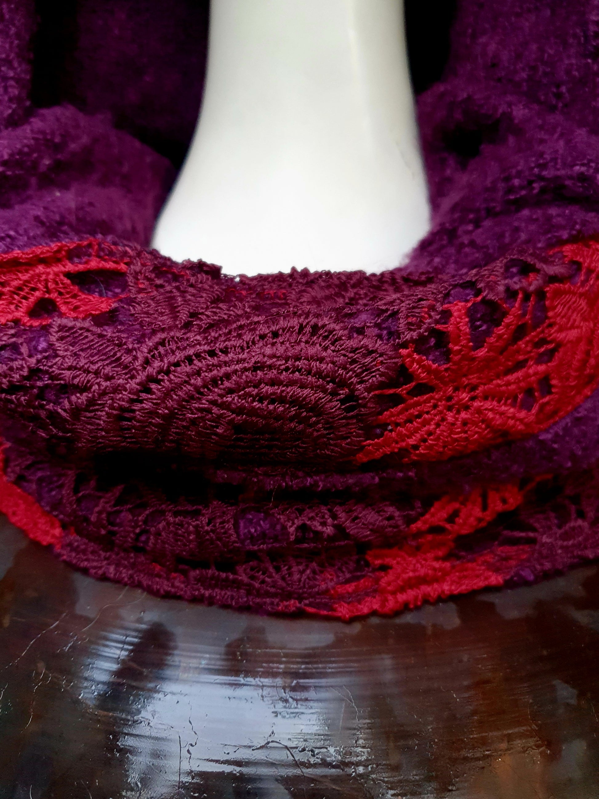 Aubergine and Autumn Red lace Hooded Scarf